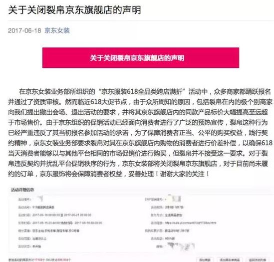 当所有商家都在关心618大促能卖出多少时,裂帛公司创始人汤大风却在618当天发布声明,申请关闭京东裂帛旗舰店。