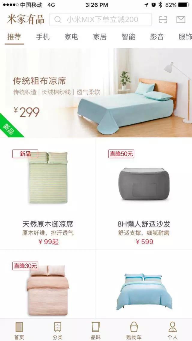小米要占领年轻人的客厅,这样小米百货一定不满足只做智能产品,而是要做品类更全的生活百货。在小米官网上,除了智能产品之外,小米还卖背包,鞋子,拉杆箱,T恤等。小米百货除了有小米生态链,事实上上还有一个叫做米家有品的APP,它的slogan是“做生活中的艺术品”,如果你打开这个APP,你会发现它就是“小米的网易严选”。