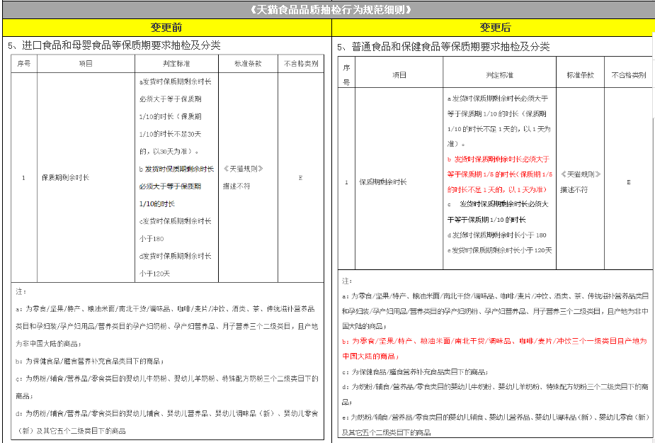 天猫致力于为消费者提供更新鲜的商品,故对于在天猫销售的商品会增加关于保质期的要求,本次主要针对产地为中国大陆的普通食品剩余保质期要求进行了升级。