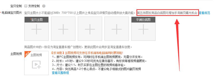 1. 主图白底(才有可能被抓取)并在第五张的位置 ,我们在发布宝贝主图的时候系统会提示,宝贝第五张主图为白底图会增加手淘首页展现曝光的机会。我们在发布的时候第五张主图一定要去选择白色或者纯色的宝贝主图,这样会大大的增加我们手淘展现和曝光的机会。