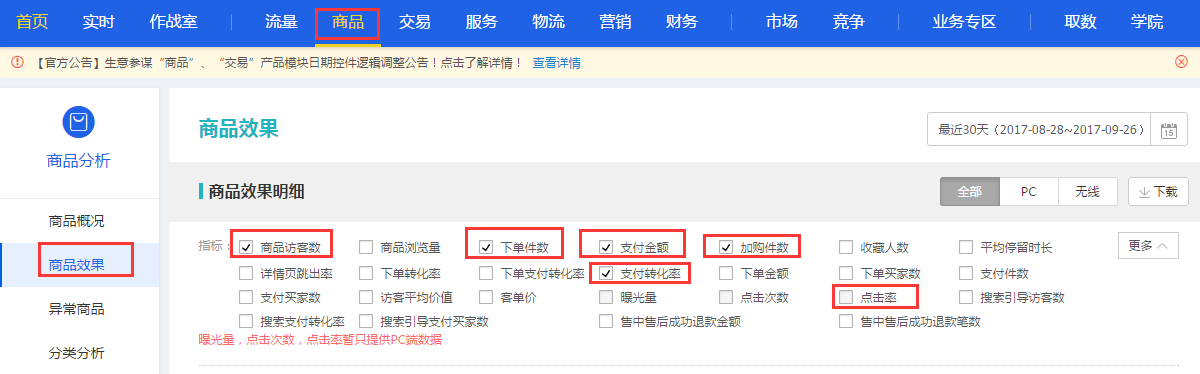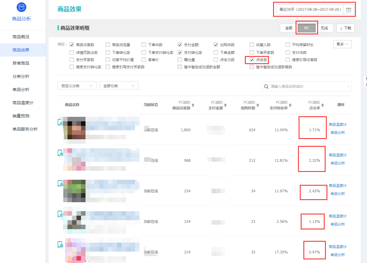 第一种,点击率,这个尤为重要,观察是否有爆款潜质,点击率是重点,如果没有点击,那么无论你的产品有多好,性价比有多高,详情页的视觉多好,没用,请记住,一点用没有,一切都需要先点击,才会形成后面的成交。