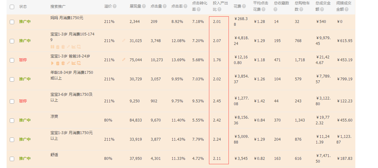 第五步:在测试人群的过程中,日限额肯定是需要逐日提高,因为会随着你的权重越来越高,你的点击越来越快,这个时候就是需要你去优化ROI的时候,把产出不太好的人群和关键词降低一些出价,没有产出的关键词和人群直接记录删除,产出好的可以提高出价